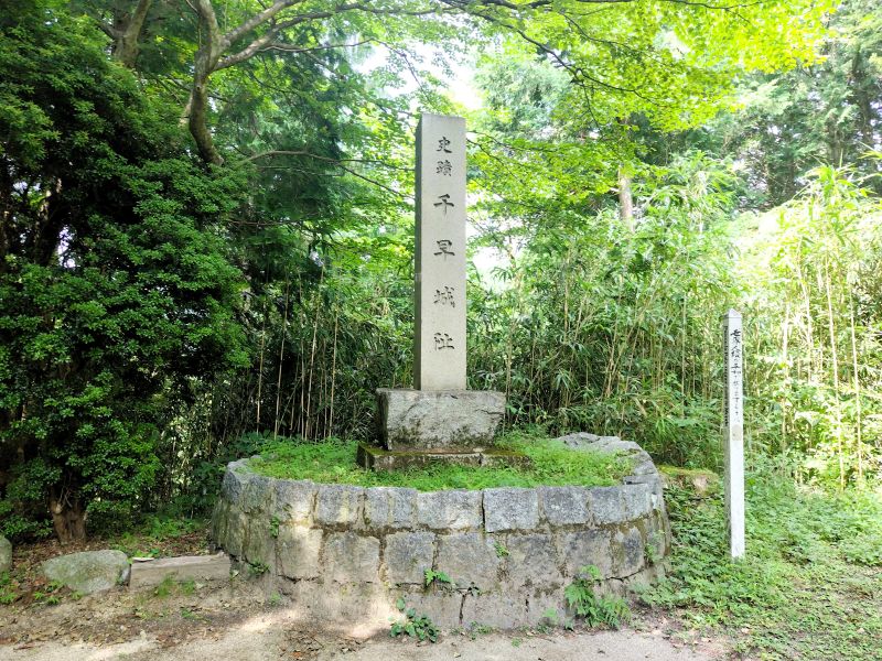 元弘3/正慶2(1333)年に千早城に籠る楠木正成が、奇策により鎌倉幕府の大軍を撃退したことが、倒幕に大きく貢献したと言われる。現在は千早神社となっている。