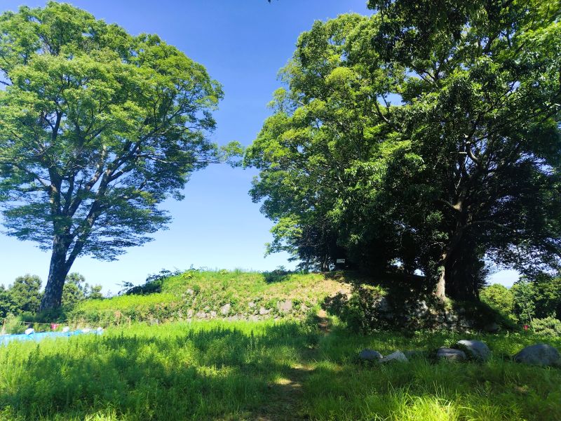 天正7(1579)年、織田信長により築城。5重6階地下1階の天守は本能寺の変後に焼失したが、石段の続く大手道や天守台の遺構などが残る。
